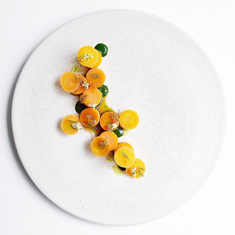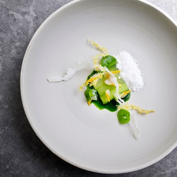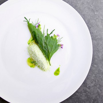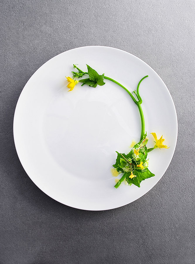 Cucumber plant, mullet, parsley purée and white wine sauce