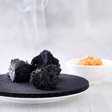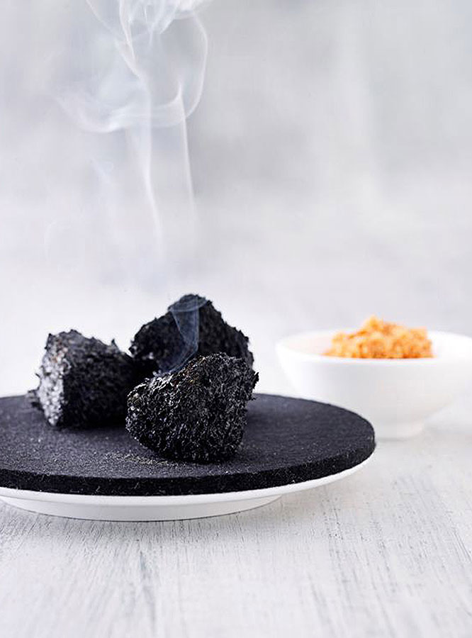 Burned ash bread, smoked fresh goat cheese and dried salmon
