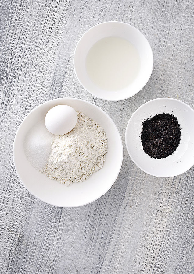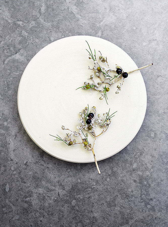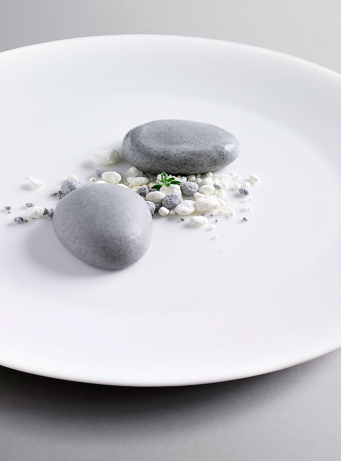 Liquorice ice cream with frozen herbs, crisp meringue and lemon