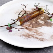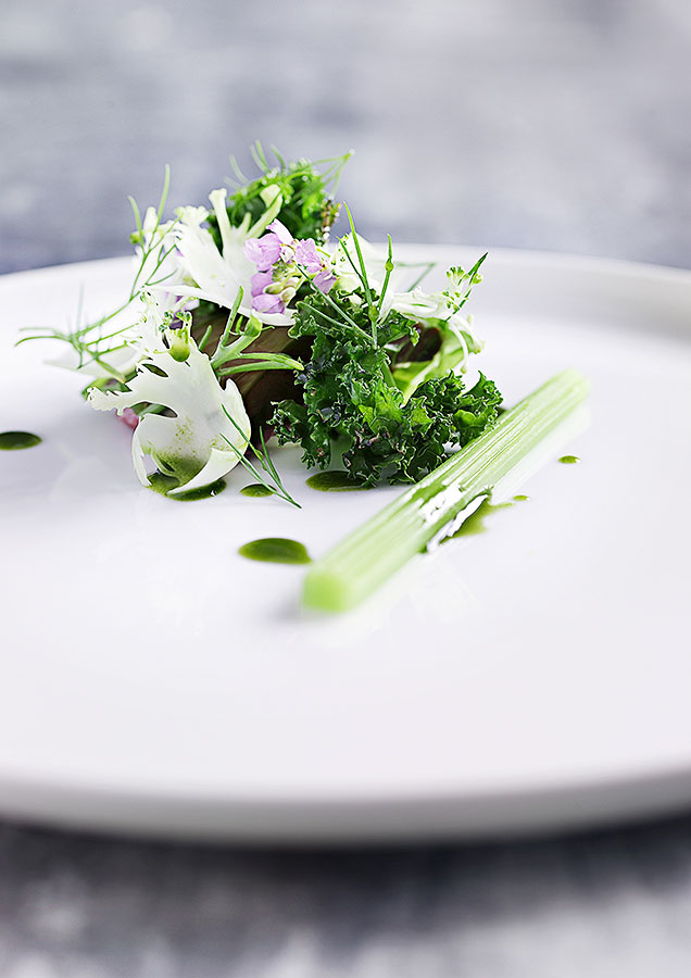 Glazed sweetbread with malt marinated celeriac and sauce on celery