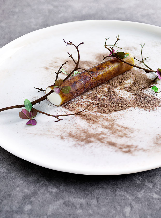 Airy chocolate parfait with chocolate sorbet and sheep cream